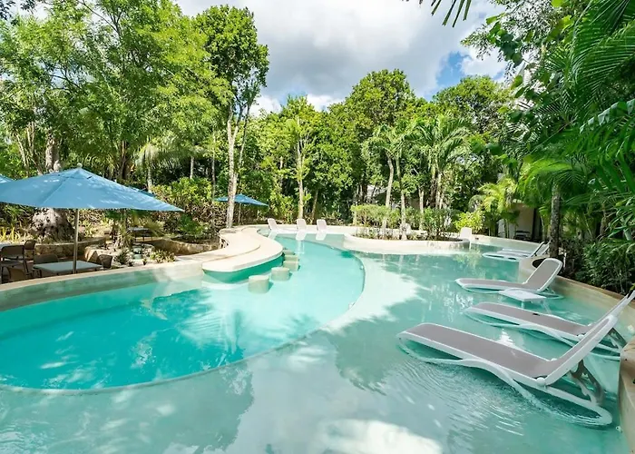 To enjoy your vacation in Akumal, stay at Luxe 1-Br Condo In Bahia Principe - Multiple Pools Akumal, which is approximately 10 minutes' drive from the known Akumal Public Beach and 1.7 miles from Aktun Chen Natural Park.